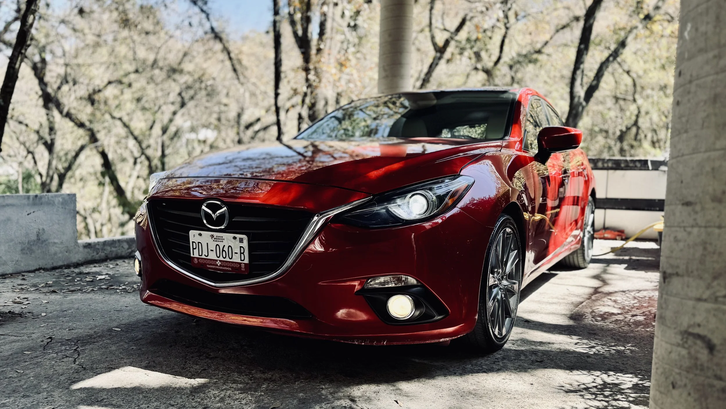 Resultado: de un auto que parecía olvidado y cansado, a un Mazda 3 rojo que arde con vida propia: rojo vivo y profundo, rines relucientes, interiores blancos como el primer día, faros que iluminan como nuevos y una presencia que no pasa desapercibida.